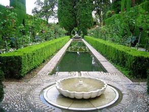 赫内拉利费宫是格拉纳达苏丹的夏宫。 赫内拉利费宫和花园,修建于格拉纳达苏丹穆罕默德三世的统治时期,宫中包括水渠庭院,有长长的水池,两侧有花坛,喷泉,柱廊,凉亭框架,以及苏丹花园。被认为是维护最好的安达卢斯式中世纪花园。赫内拉利费宫与阿尔罕布拉宫原本用横跨峡谷的走道联系在一起。赫内拉利费宫是保存下来最古老的摩尔花园之一。 今天的花园,始建于1931年,在1951年完成。走道都铺上了鹅卵石:白色的来自达罗河,黑色的来自赫尼尔河。