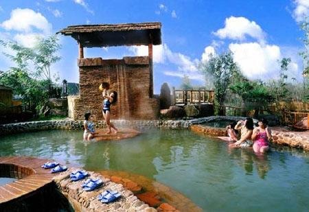 度假区利用天然优质矿泉水建造了星座池、生肖池、五行池等80余座风格各异的室外园林式汤池和室内中庭式汤池。开发了名花汤、名酒汤、名木汤、香薰汤,以及牛奶浴、中药浴、矿砂浴、石板浴、盐浴、泥浴、氡汽浴、天体浴等适合各类客人的SPA水疗设施。其功效奇妙,智能化电子导浴屏使客人轻松找到适合自己的汤池,是澡身沐德、强身健体的新休闲生活方式的选择。